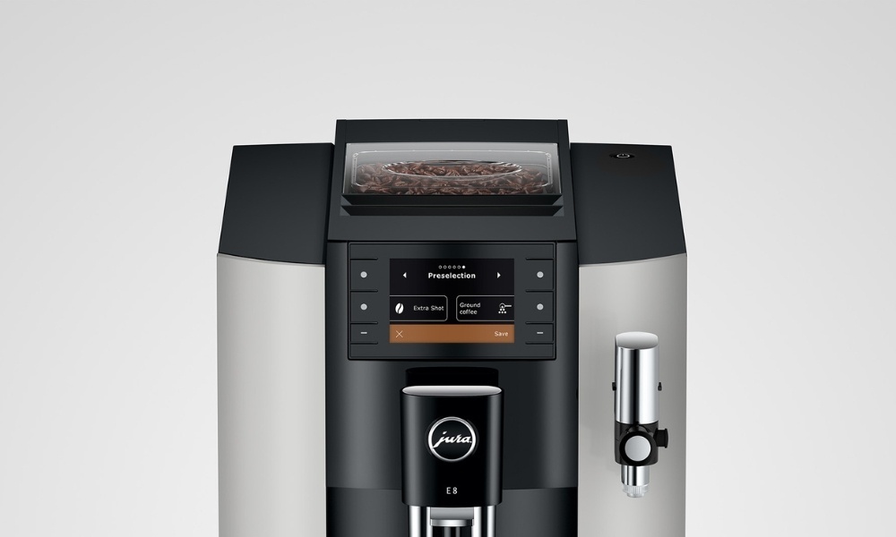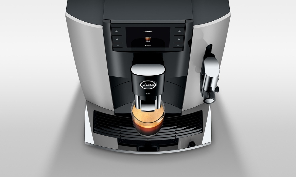 JURA hecht veel belang aan design bij haar ontwikkelingen. De E8 heeft daarom een herkenbare uitstraling en valt op door aandacht voor details, het gebruik van hoogwaardige materialen en precisie in de afwerking. Het moderne, strakke ontwerp wordt gekenmerkt door harmonische symmetrische lijnen. Heldere, eenvoudige vormen met zorgvuldig geplaatste accenten geven het structuur en karakter. Het design van de volautomaat heeft alle ingrediënten om zelfs na vele jaren fris en modern te blijven ogen.
